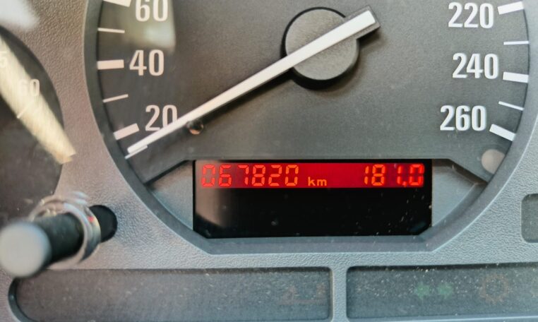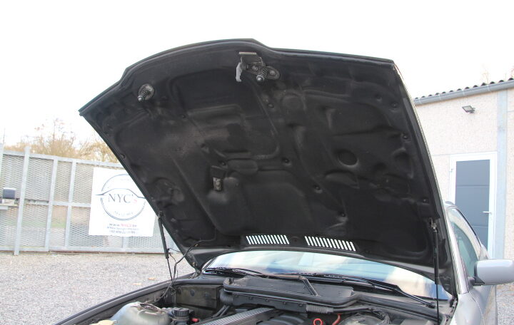 En ce qui concerne la carrosserie, elle présente bien dans l’ensemble mais n’est pas parfaite : griffe sur le coin du PC arrière, sur le PC avant gauche, éraflure sur l’aile arrière gauche et un petit dégât au bas de caisse coté droit. Pour le reste, elle est en très bon état et surtout, elle est dans sa peinture d’origine ! Voir sur notre site les photos avec le testeur de peinture, c’est assez incroyable de trouver des E36 dans cet état de préservation.