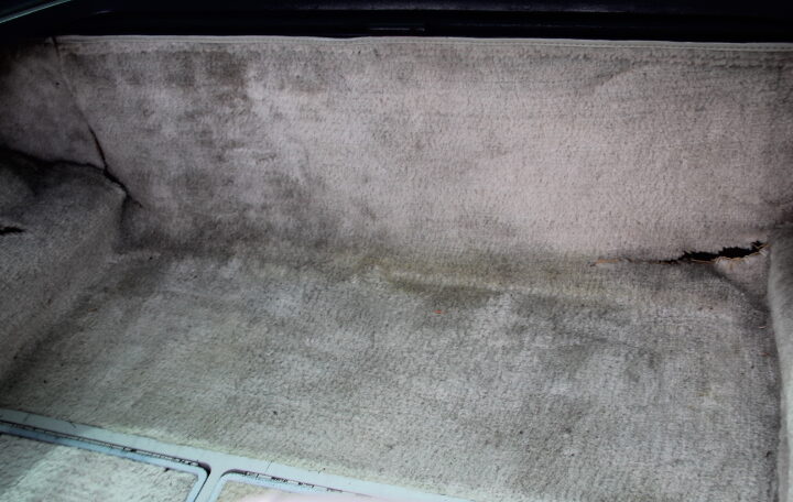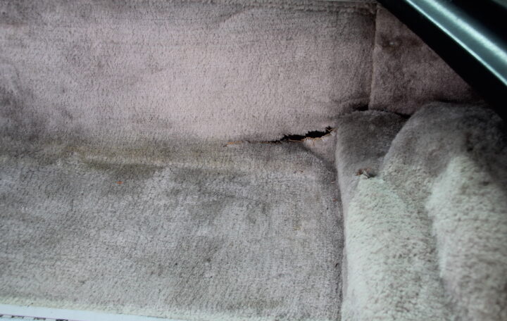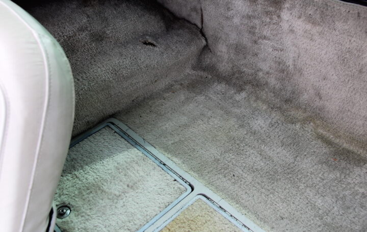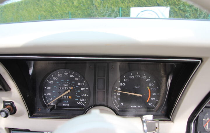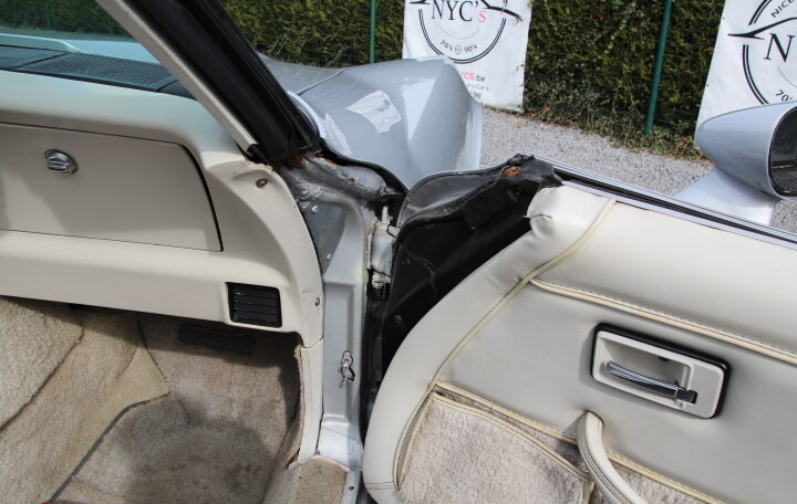 L’intérieur présente bien dans l’ensemble mais n’est pas parfait : une usure globale, due à son âge et utilisation est a noter : usure des tapis, du cuir des sièges, des panneaux de portes et de la console centrale.