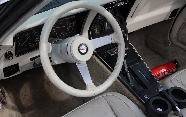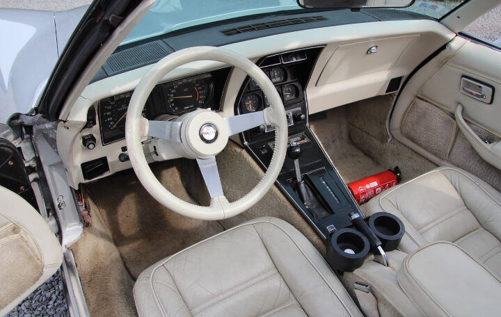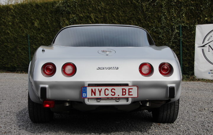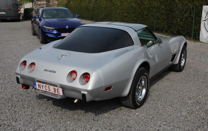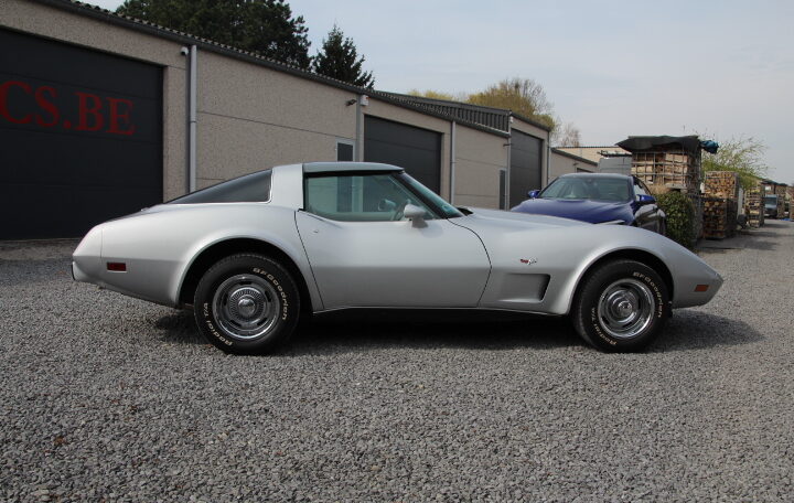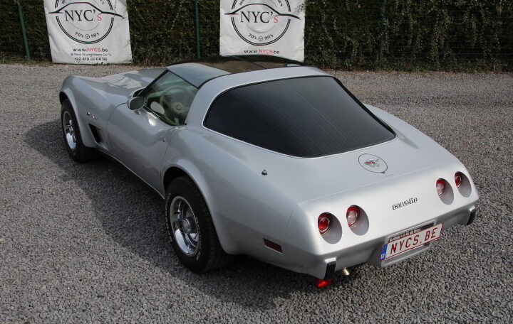anniversaire de la Corvette, et toutes les C3 sorties en 1978 arboraient des emblèmes de nez et de trappe de carburant en argent. Une nouvelle lunette arrière type fastback a été le changement de style le plus spectaculaire (offrant plus de place à l’arrière et une meilleure visibilité). Son moteur reste le V8 en 5,7l développant 208cv et la carrosserie est en polyester pour gagner en poids.