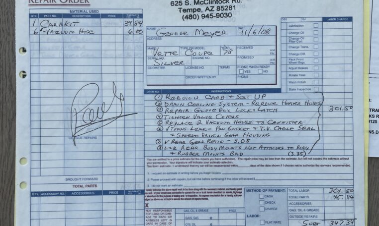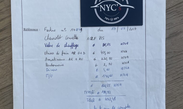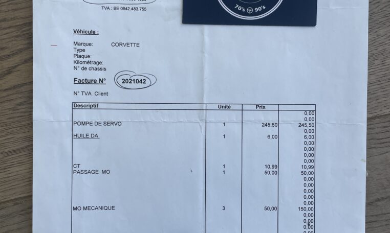 Nous avons une bonne traçabilité de la vie de cette Corvette qui est restée très longtemps aux USA, en Arizona, au sein du même propriétaire (nous avons un bon nombre de factures sous le même nom). C’est en 2014, qu’elle a été importée en Belgique, achetée par un professionnel qui l’avait vue là-bas aux USA. Toujours en 2014, elle a été vendue à son actuel propriétaire belge qui la possède donc depuis 12 ans. Ce dernier a décidé de la revendre par manque de temps pour en profiter.