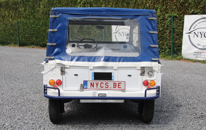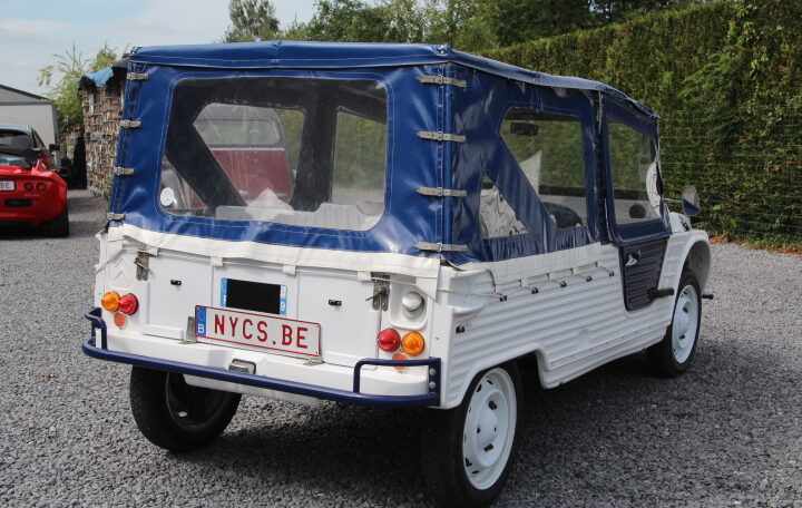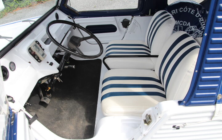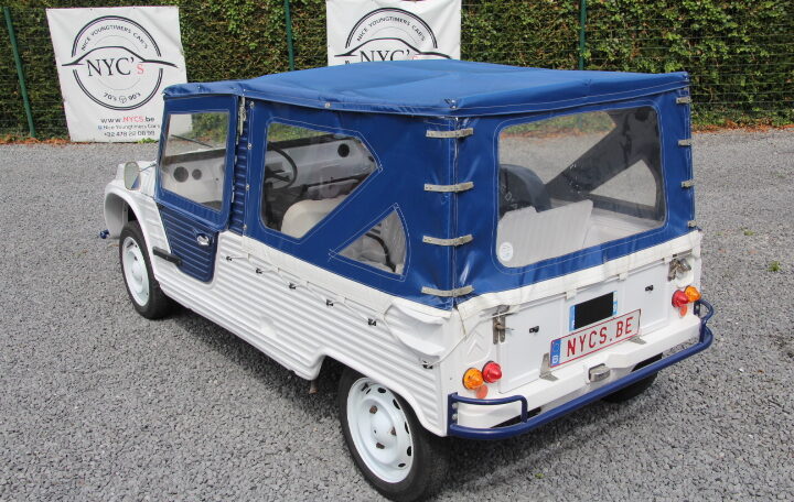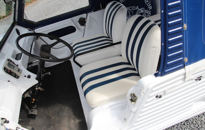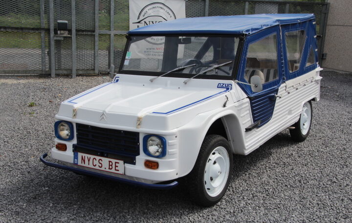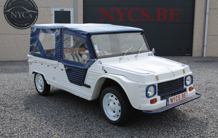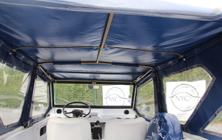 NYC’s vous propose à la vente un très beau modèle de 1969 totalisant un peu moins de 96.000 Kms au compteur, de couleur blanche et bleue, intérieur blanc et bleu également. Elle adopte en fait le look « Azur ». Son actuelle propriétaire, une française qui la possède depuis septembre 2023, a décidé de la revendre car elle n’a plus de raison de la garder (projet annulé de faire un séjour en Corse avec cette magnifique Méhari).