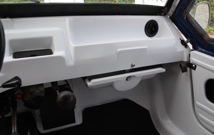 La carrosserie présente bien, nous ne voyons pas de coup ni de griffe. Étant en plastique, elle ne présente pas de corrosion (a noter d’elle a eu une grosse rénovation, voir sur notre site le dossier des factures).