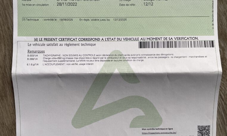 Le dernier rapport du contrôle technique date d’aout 2025 (70 772 Kms) et ne mentionne aucune remarque technique sur ce très beau Defender 2.