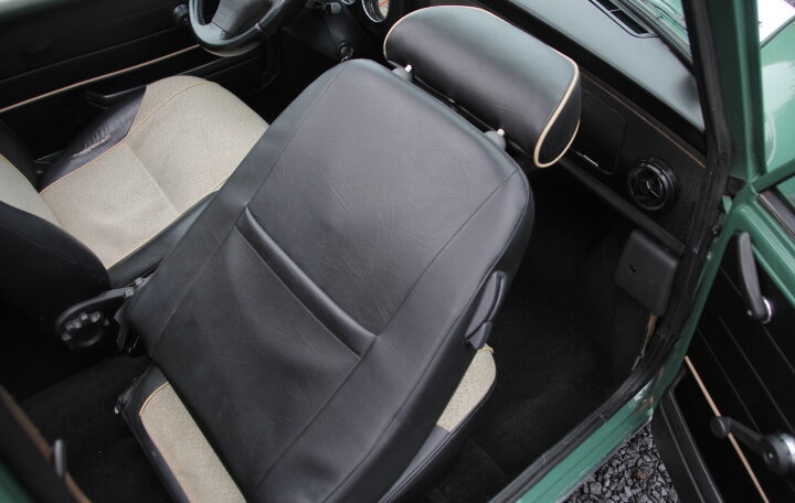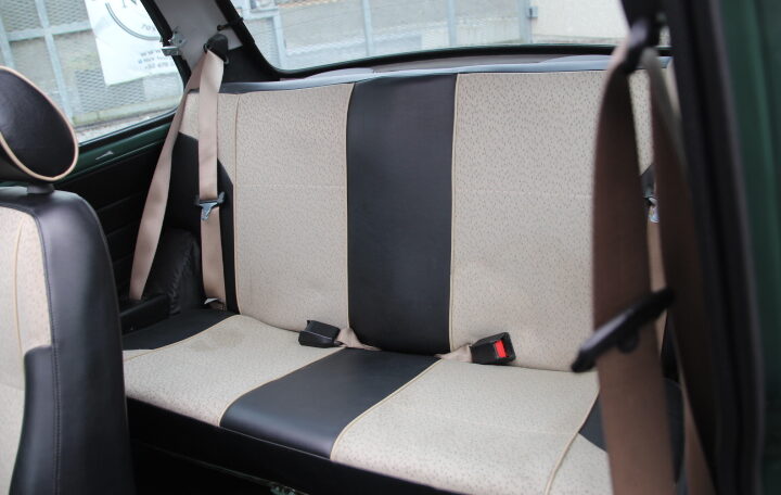 NYC’s met en vente une très belle Mini Cooper 1300 (développant 63 cv) de couleur verte intérieur blanc et cuir noir totalisant moins de 100.500 Kms.