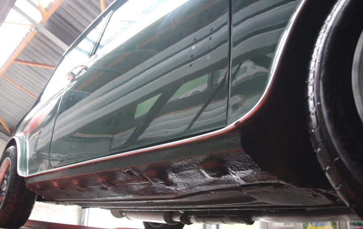 Les chromes (parechocs, bas de caisse et contours des vitres) sont aussi impeccables, pas de présence de corrosion.