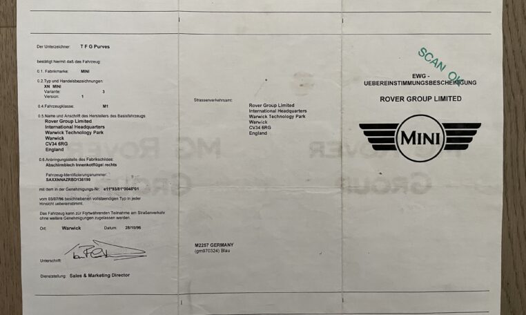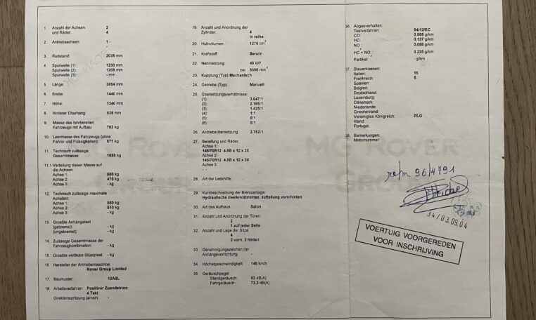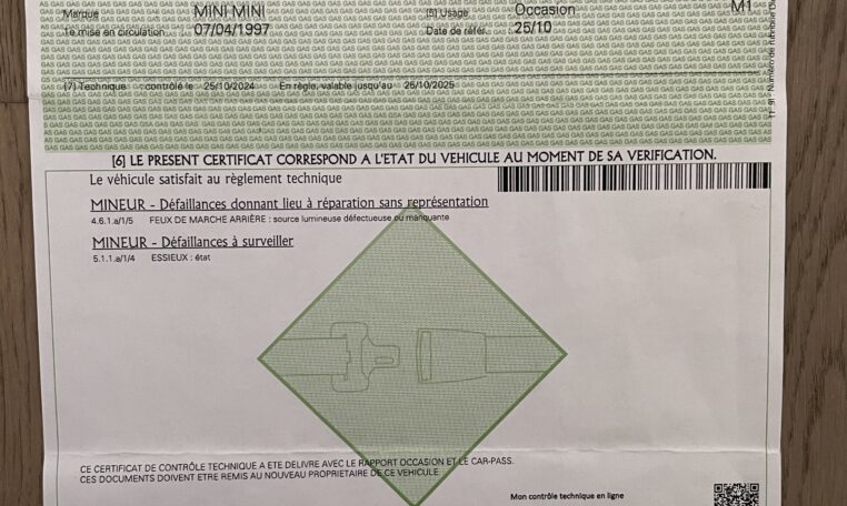 Enfin, la mécanique est évidemment et logiquement en ordre, rien n’est à prévoir non plus et les frais des dernières années sont conséquents pour avoir maintenu cette Mini dans un très bon état. Voici ce qui a été effectué ces 12 dernières années :